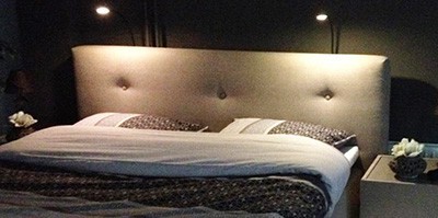 2 ledlampjes die éénvoudig te monteren zijn op de achterwand van uw bed.