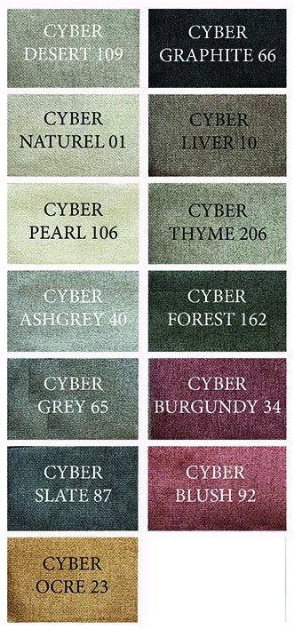 Naturel 01 / Beige 05 / Desert 109 / Liver 10 / Anthracite 67 / Onyx 169 / Slate 67 / Ashgrey 40