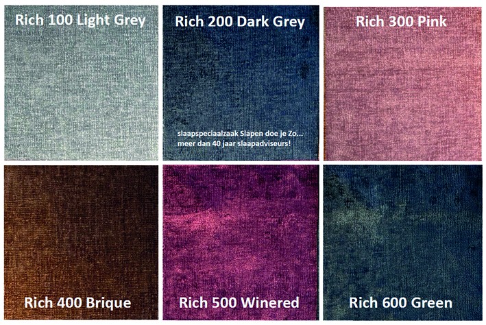 U kunt bij ons uw boxspring volledig naar uw smaak samen te stellen. Ontdek ons uitgebreide assortiment aan kleuren en stoffen, zodat uw boxspring perfect past bij de stijl van uw slaapkamer. Vindt u het lastig om vanaf een scherm te kiezen? Vraag dan hier uw proefstaaltjes aan.