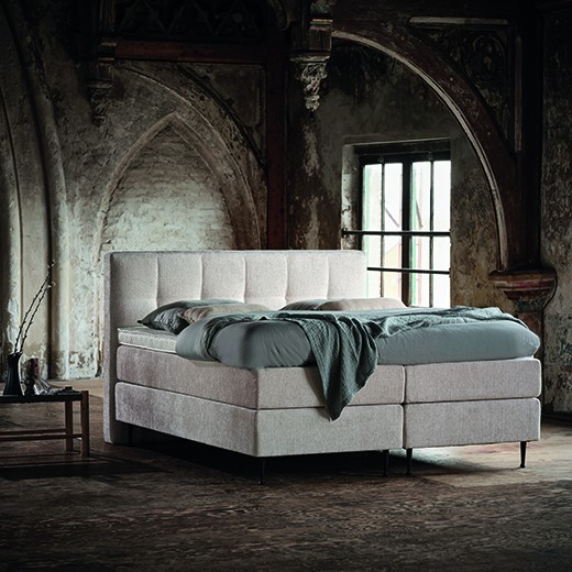 voor een optimaal ligcomfort. Geen hardere stroken in het midden. Stoffering van de boxsprings is afgewerkt met dubbelnaalds stikwerk.