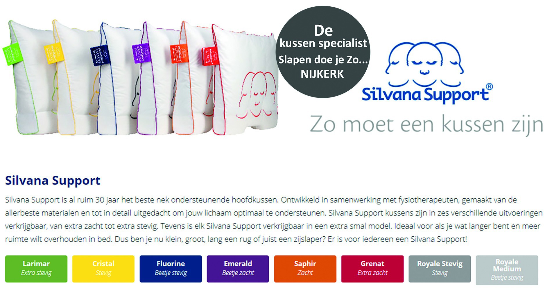 De Support Blauw heeft een neksteun van Vita Talalay latex®.