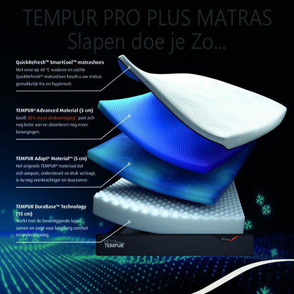 TEMPUR PRO PLUS SmartCool MEDIUM-FIRM matras 25 cm dikte.